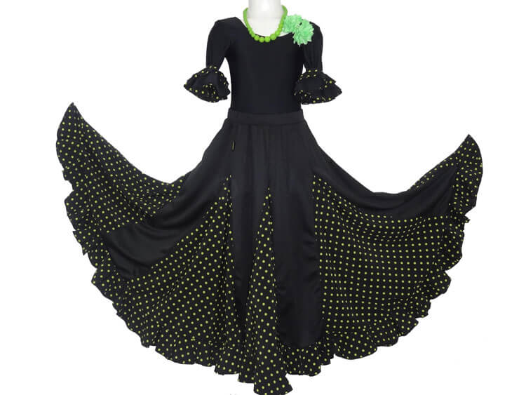 Black skirt with polka dot green in promotion ,this skirt is ideal to practice the flamenco dance