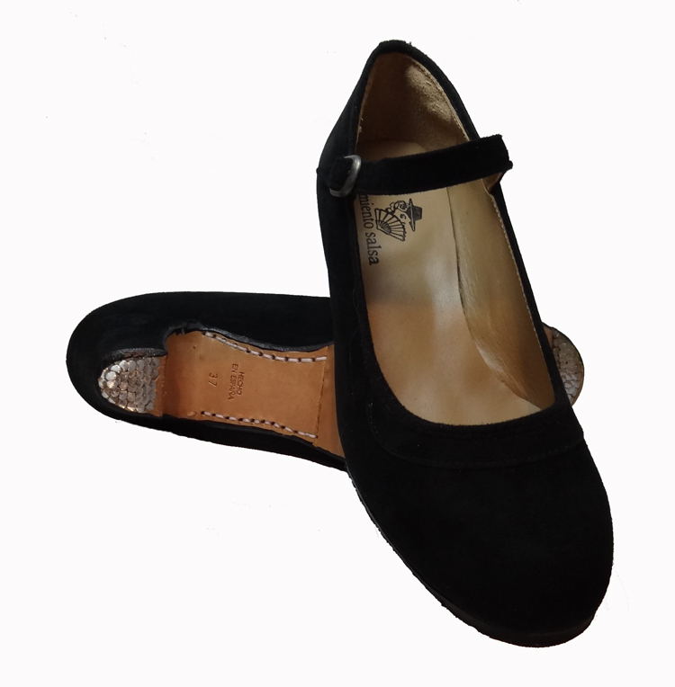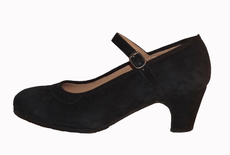 Professional shoes with flange,hand sewed for Flamenco or Sevillanas black suede (flower)
